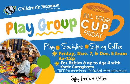 Join us for Fill Your Cup Fridays—a monthly gathering for parents and children age birth to 4 years! Grownups enjoy coffee, & conversation while little ones enjoy toys, tummy time, and a welcoming space to meet up and engage with other caregivers and kiddos. This program is FREE for Members and included with admission. No need to register.